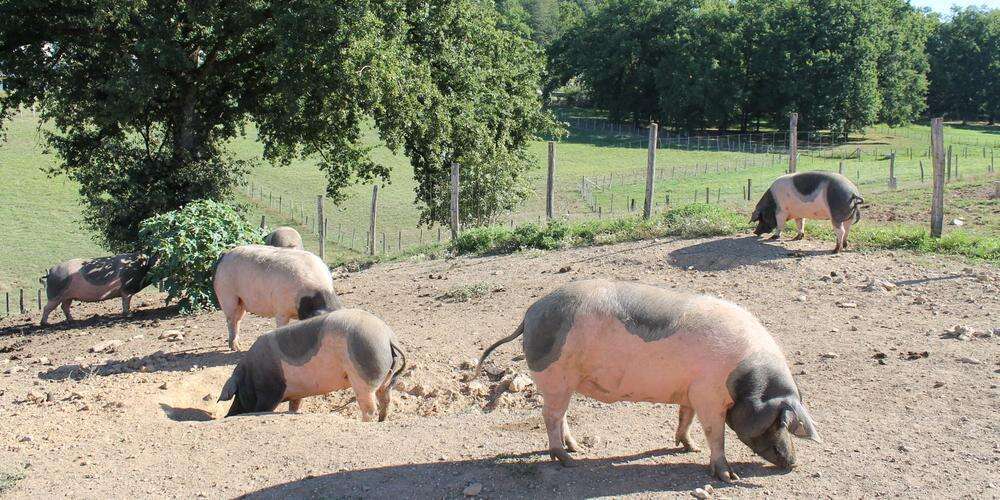 Nous proposons en vente directe à la ferme, dans notre chalet, de la viande d'agneau, de porc, de veau de lait et de la viande et de la charcuterie de porc Cul Noir Limousin